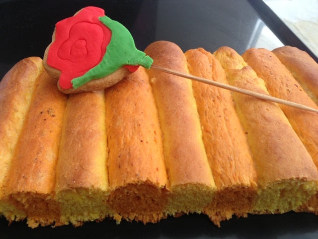 Cuando el pan esté frío, córtelo a lo largo que se vean los colores.