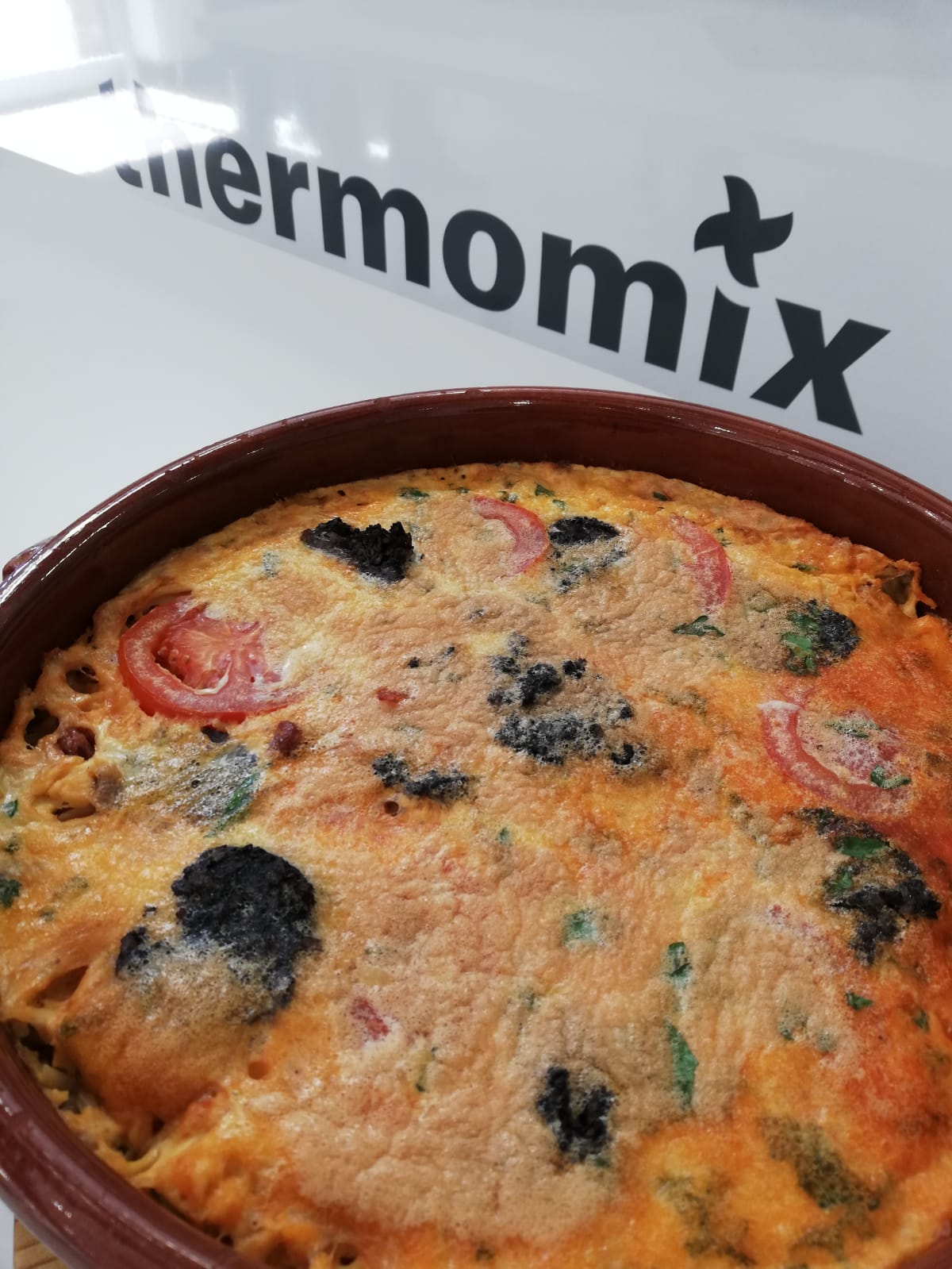 - Ponga en el vaso los huevos y el perejil picado reservado y bata 2min/vel 3. Retire la fuente del horno y vierta el huevo batido sobre el arroz. Hornee a mecia altura durante 5 min (250°) o hasta que la superficie este bien dorada. Retire del horno y sirva inmediatamente.