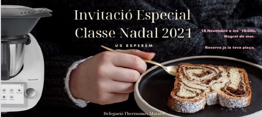 SI voleu idees i truquets per cuinar amb el vostre Thermomix fantàstics plats per aquestes festes us convidem a assistir a la Classe de Nadal que farem a Malgrat de Mar el 18/11/2021 a les 18:00 Hores.