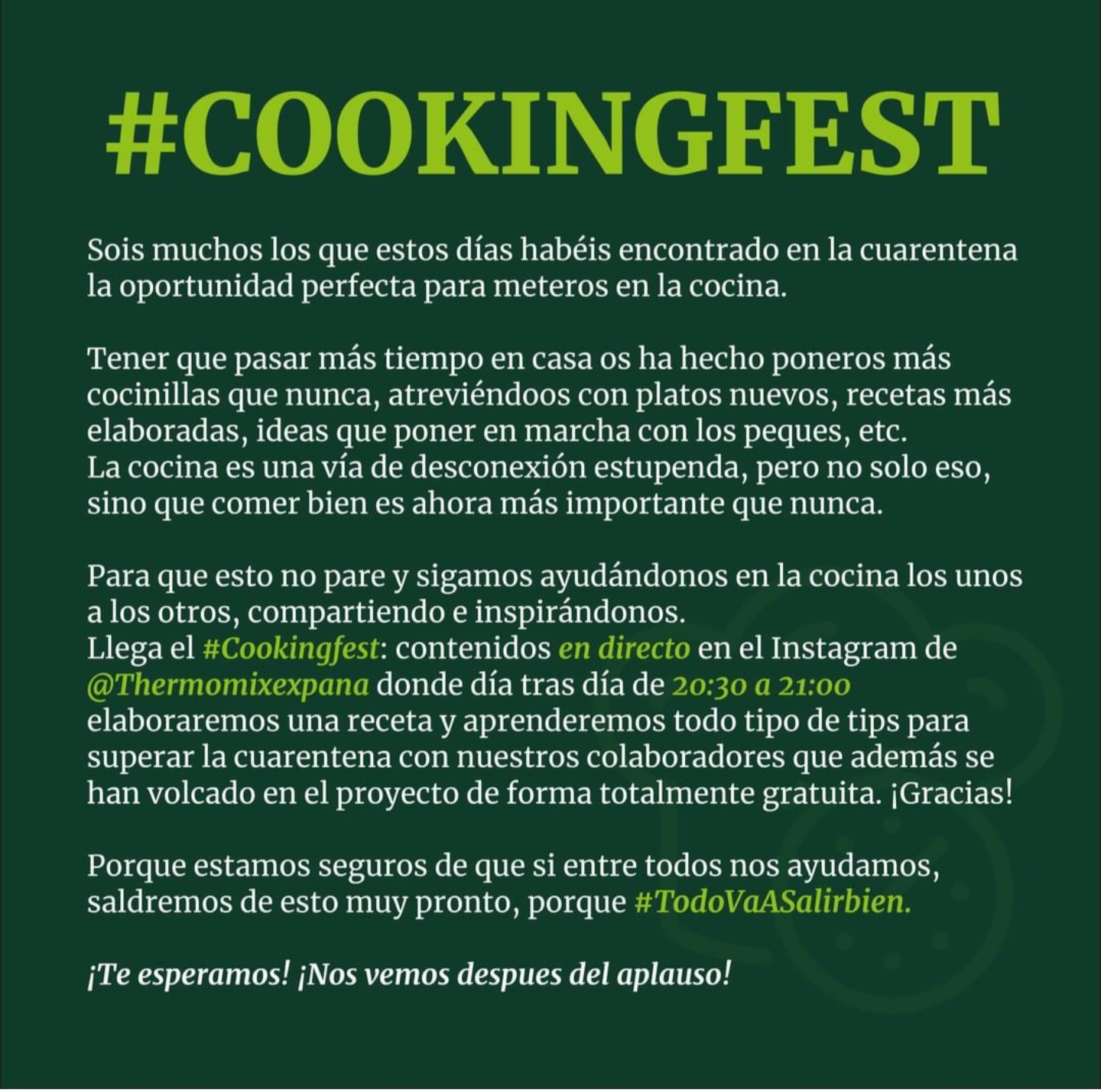 Queremos haceros partícipes del primer #cookingfest que tendrá lugar esta noche en el Instagram de @Thermomixespana de las 20:30 a las 21:00.