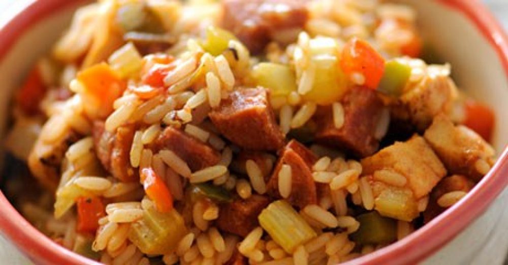 Jambalaya es un plato típico Cajún, propio de Lousiana (EEUU). Jambalaya quiere decir en sentido figurado mezcla, y en este caso es una mezcla de arroz con guiso de pollo